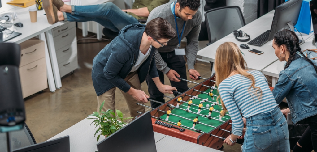 Sport geht immer. Wenn es im Büro extrem öde ist und du in der Pause etwas Bewegung brauchst, spiel doch mit deinen Kollegen eine runde Tischtennis. “Aber mein Chef erlaubt uns keine Tischtennisplatte im Büro!” Brauchst du auch nicht!