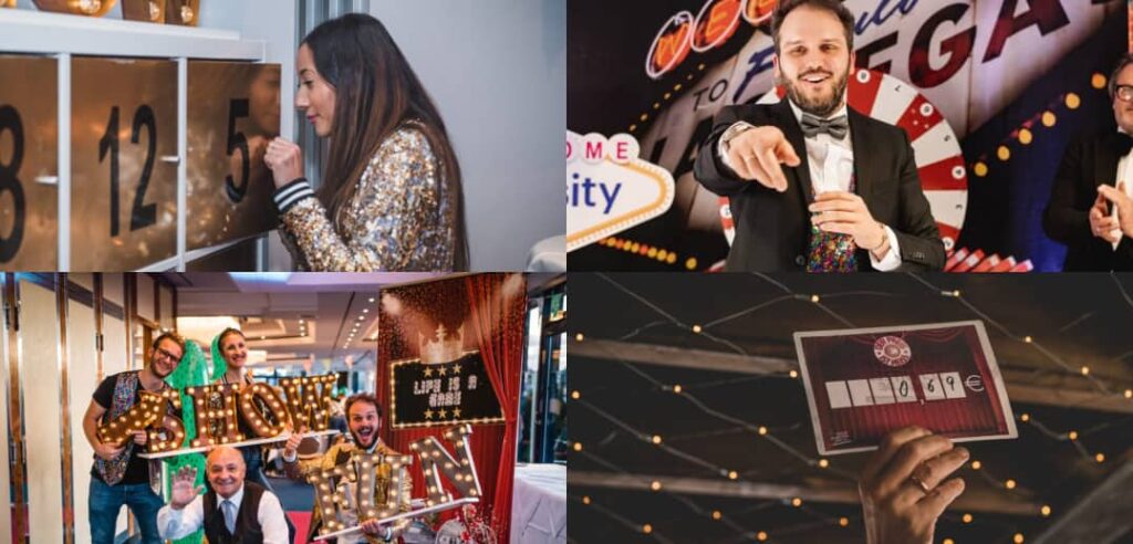 In einer Location eurer Wahl erwartet euch ein mobiles Casino mit hochwertigen Spieltischen, Slot Machines, thematischer Deko und professionellen Croupiers.